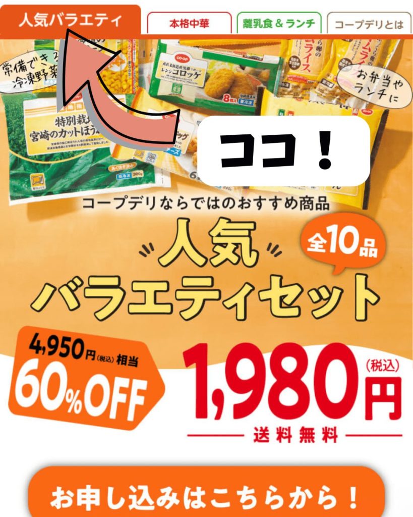 ▷メインのおかずもはいったコープで人気の商品セット